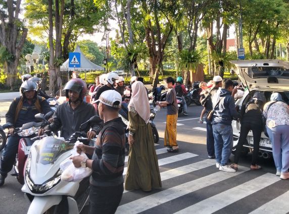 “Saya sering melewati jalan ini saat menjelang berbuka, dan kegiatan seperti ini sangat membantu. Kadang kami belum sempat membeli makanan karena masih di perjalanan, jadi sangat bersyukur bisa mendapatkan takjil gratis,” kata Rudi.