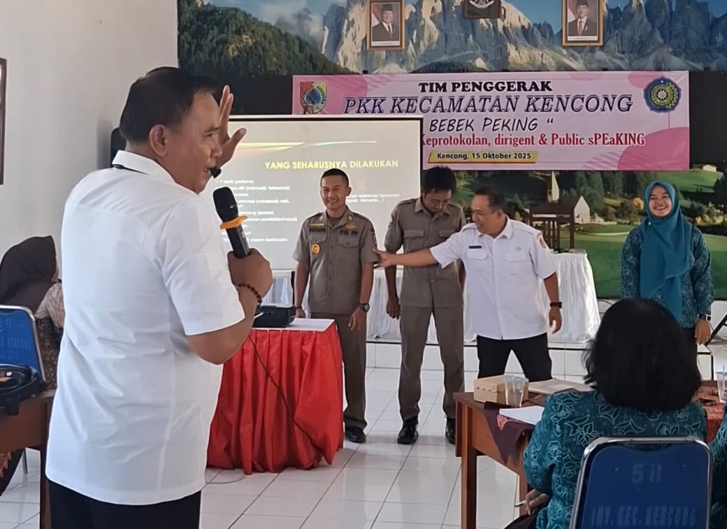 Pewarta.TV, Jember, Rabu (15-10-2025). Sejak pukul 09.00 WIB beberapa staf sekretariat TP PKK Kecamatan Kencong siuk mempersiapkan acara yang akan digelar di Aula PKK Kecamatan. Kegiatan yang digagas oleh Ketua TP PKK Kecamatan Kencong dalam rangka peningkatan kompetensi Sumber Daya Manusia (SDM) anggota Tim Penggerak PKK baik yang ada di Tingkat Kecamatan dan Desa dengan mengadakan kegiatan BElajar BErsama Keprotokolan, dirigent dan Public sPEaKING (BEBEK PEKING).