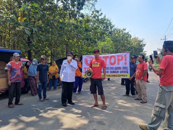 Warga memaksa truck dump bermuatan tanah tambang memicu kerusakan jalan, selain itu kerap mengakibatkan kecelakaan hingga timbul korban jiwa dialami oleh pengguna jalan lain