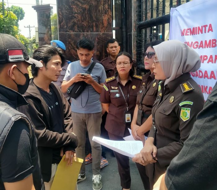 Lewat pengeras suara di atas mobil pickup, para orator aksi mendesak Kejati Sumut segera mengambilalih pengusutan kasus dugaan korupsi terkait pengadaan Smart Board dan Meubilair senilai Rp100 miliar di Dinas Pendidikan (Disdik) Kabupaten Langkat.