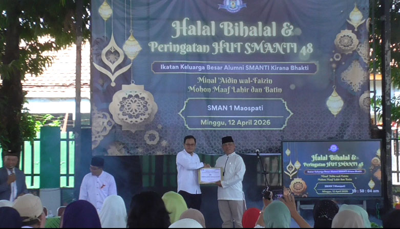 Pewarta.TV, Magetan – Suasana penuh keakraban mewarnai acara Halal bihalal Ikatan Keluarga Besar Alumni SMA Negeri 1 Maospati (IKA –SMANTI)  Kirana Bhakti angkatan 1980 hingga 2020 yang berlangsung di Aula SMANTI, Minggu (12/4/2026)