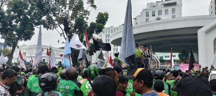 Pewarta.TV, Medan – Ratusan pengemudi ojek online (Ojol) yang dimotori Gabungan Ojek Roda Dua Medan Sekitar (Godams) menggelar aksi damai menuntut potongan tarif aplikasi berdasarkan Permenhub Nomor 667 Tahun 2022 yang merugikan para pengemudi ojol. Aksi yang bertitik kumpul di Jalan Pulau Pinang, Kesawan, Kecamatan Medan Barat menuju ke Kantor Gubernur Sumatera Utara di Jalan Pangeran Diponegoro, Kecamatan Medan Polonia.