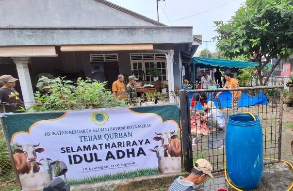 Pewarta.TV, Medan – Dalam semangat Idul Adha 1446 Hijriah, Pimpinan Daerah Ikatan Keluarga Alumni Badan Komunikasi Pemuda Remaja Masjid Indonesia (IKA-BKPRMI) Kota Medan melaksanakan penyembelihan hewan kurban. Kegiatan berlangsung pada Sabtu, 7 Juni 2025, di Jl. Karya Bakti No. 3 Kel. Sei Sikambing D Kec. Medan Petisah.