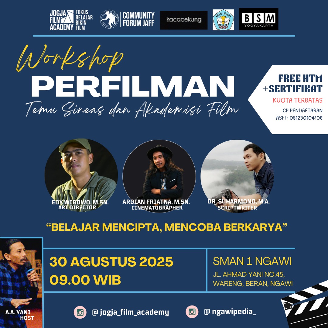 Workshop ini tak sekadar ajang belajar teknis perfilman, tetapi juga pintu masuk bagi generasi muda Ngawi untuk mengenal lebih dekat ekosistem industri film di Indonesia. Kegiatan ini menargetkan 50 peserta dari kalangan siswa SMA, SMK, MA, hingga pondok pesantren se-Ngawi Raya, lengkap dengan guru pendamping.