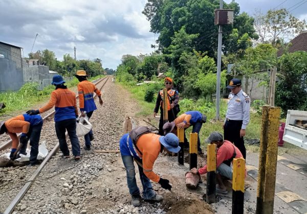 “Normalisasi dan peningkatan jalur KA dilakukan dengan penutupan dan pematokan menggunakan rel, tepatnya di JPL 203 Km 125+8/9 petak jalan antara Stasiun Blitar–Rejotangan, Desa Sanankulon, Kecamatan Sanankulon, Kabupaten Blitar,” jelas Manajer Humas Daop 7 Madiun, Rokhmad Makin Zainul, Minggu (19/10/2025).