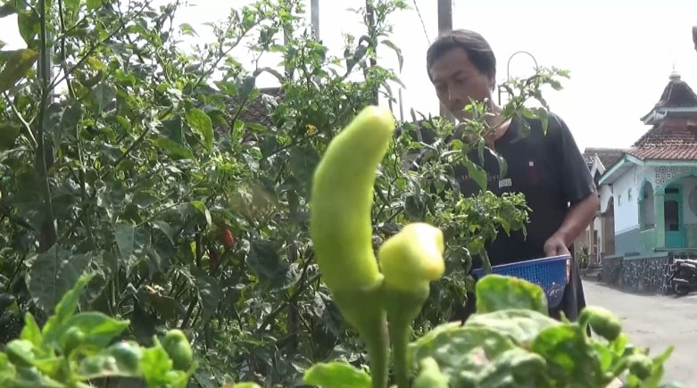 Dialami Sugiarto, tanaman cabe rawit ia tanam di pekarangan depan rumah hargnya anjlok, murah seharusnya terjual seharga 40 ribu rupiah perkilo, kini hanya 27 ribu rupiah