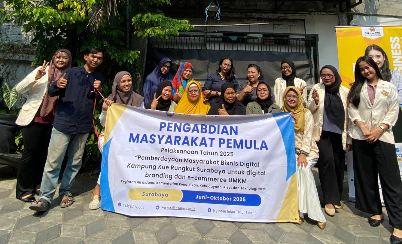 Pewarta.TV, Surabaya – Kegiatan pengabdian masyarakat berupa pelatihan digital branding dan E-Commerce UMKM oleh tim dosen Stikosa AWS dilaksanakan Minggu (22/6) di Kampung Kue Rungkut, Jl Rungkut Lor Gang 2, Kelurahan Kalirungkut Surabaya.