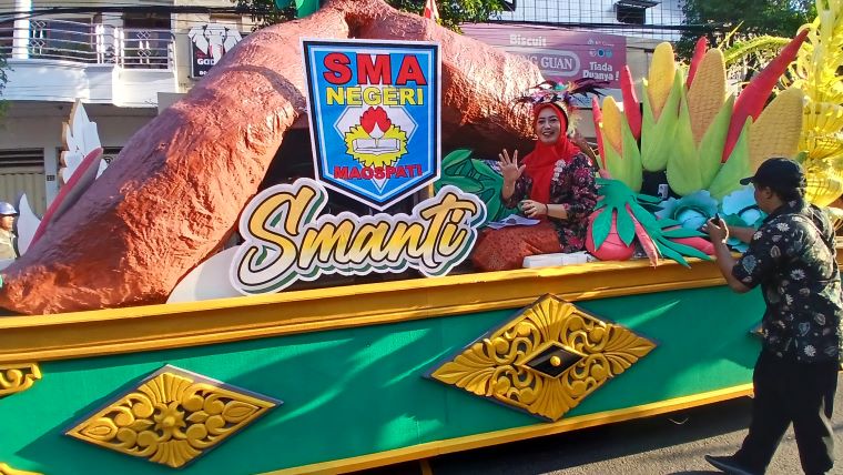 SMA Negeri 1 Maospati menjadi salah satu peserta yang paling mencuri perhatian masyarakat dan tamu undangan. SMA Negeri 1 Maospati menampilkan Replika bulir padi menguning yang melambangkan lumbung pangan hasil keringat dan doa para petani yang tak lelah berkerja. Senyum para petani adalah wujud syukur, karena Magetan memiliki hasil bumi yang melimpah