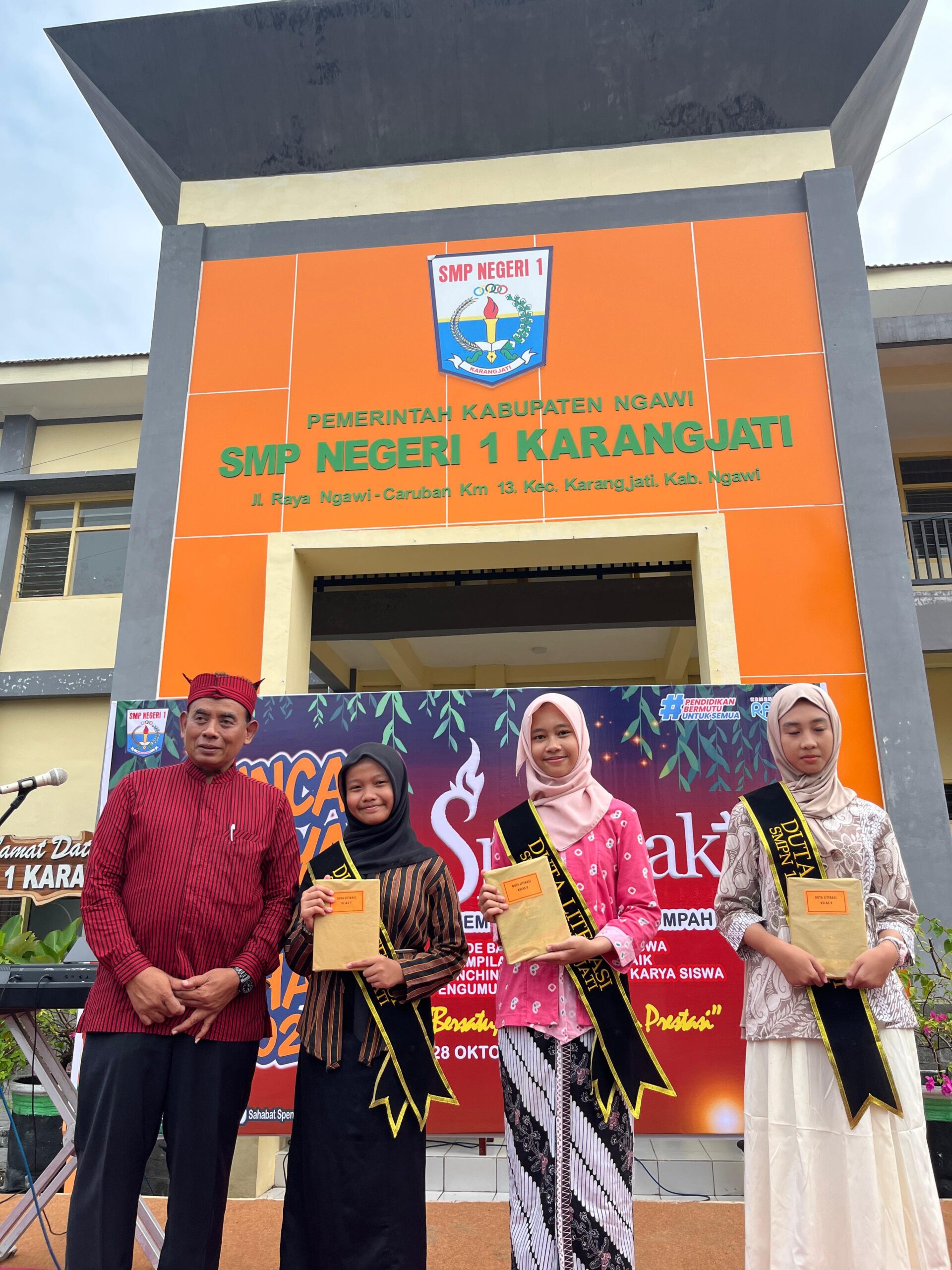 Ngawi, Pewarta.TV-Dalam rangka menyongsong bulan Bahasa yang jatuh di bulan Oktober, SMPN 1 Karangjati mengagendakan beberapa kegiatan yang menarik dan kreatif. Kegiatan-kegiatan tersebut antara lain pemilihan duta literasi, menulis kreatif, mendongeng, parade puisi, dan yel-yel, yang semuanya bertema PEMUDA.