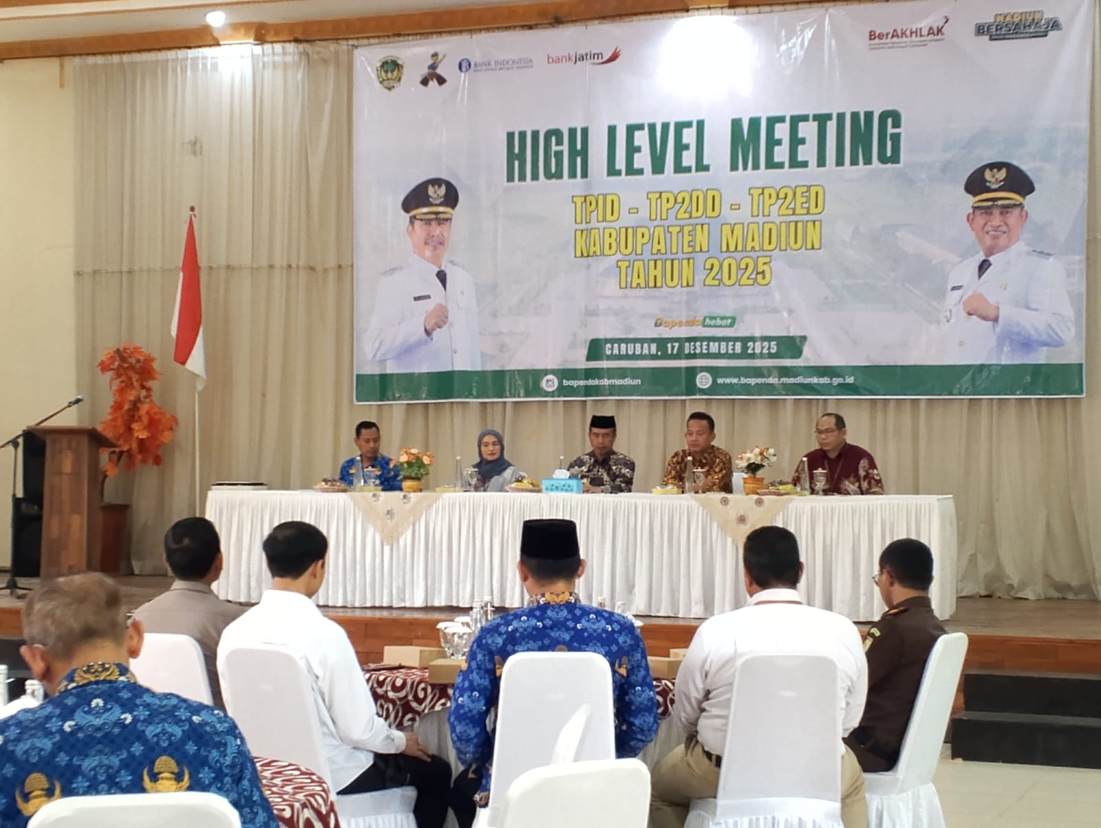 High Level Meeting (HLM) TPID, TP2DD, dan TP2ED digelar Pemerintah Kabupaten Madiun bersama Kantor Perwakilan Bank Indonesia Kediri, menjadi wadah strategis untuk memperkuat sinergi lintas sektor dalam pengendalian inflasi dan percepatan transformasi digital