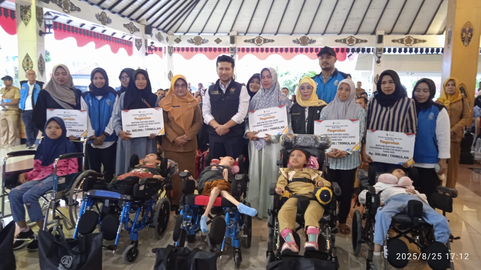 Pewarta.TV, Magetan – Wakil Gubernur Jawa Timur, Emil Elestianto Dardak didampingi Bupati Magetan Nanik Endang Rusminiarti menyerahkan berbagai bantuan sosial bagi penerima manfaat yang berada dalam kelompok rentan. Penyerahan dilaksanakan di Pendopo Surya Graha, Senin (25/8/2025)
